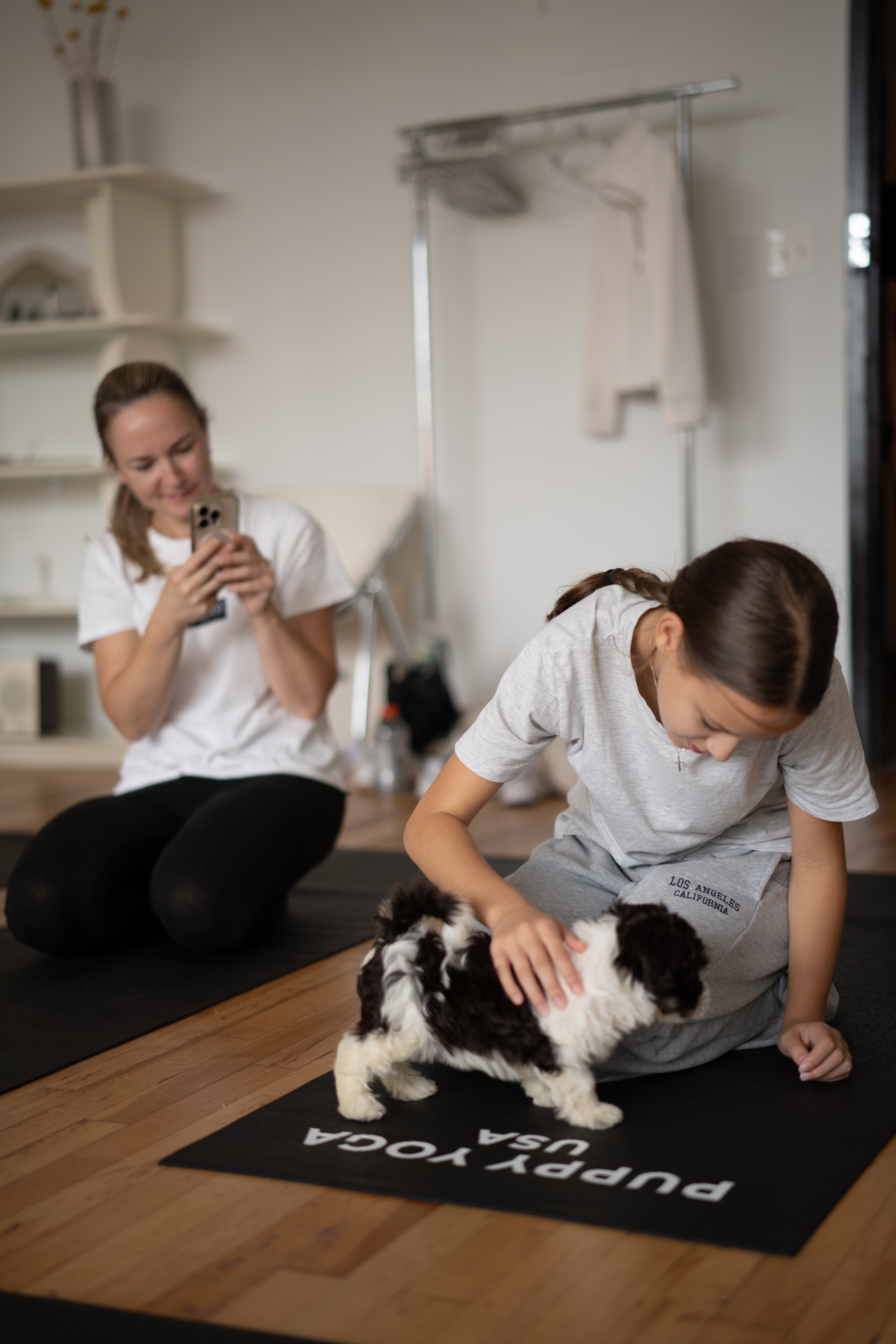 The puppy yoga space feels welcoming and warm.